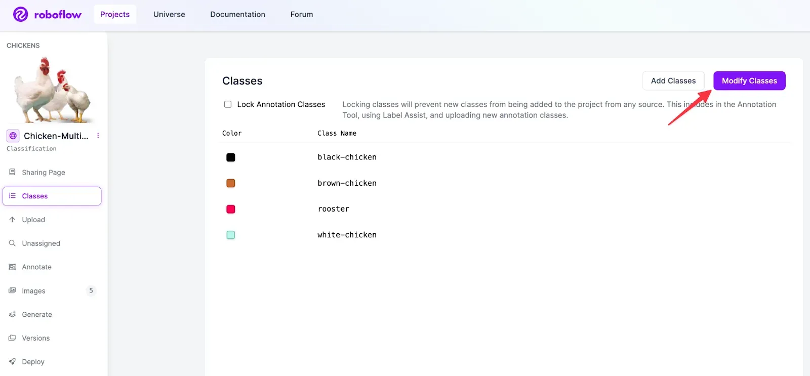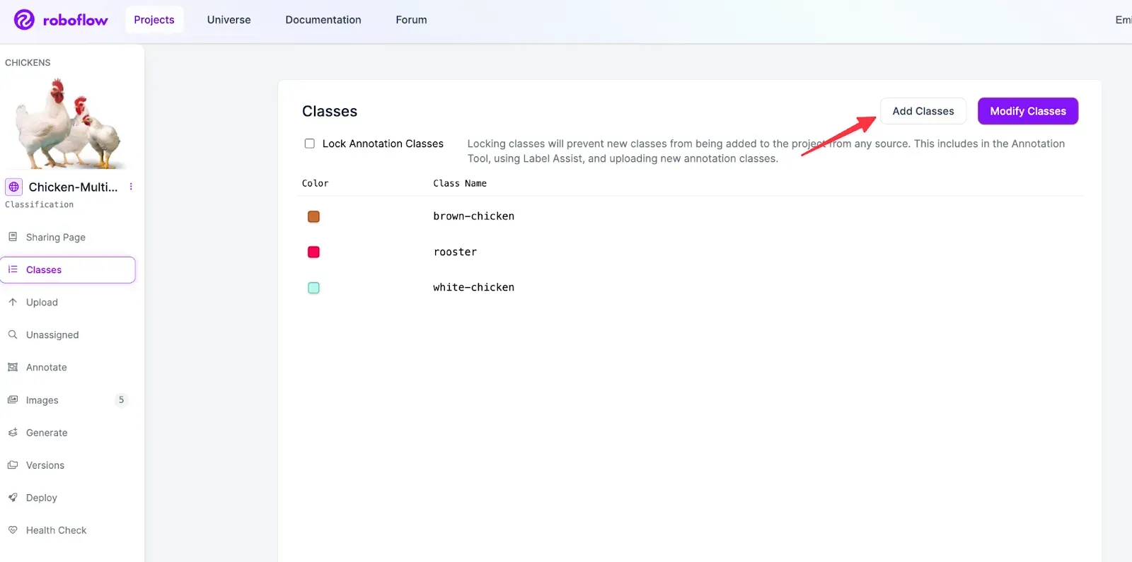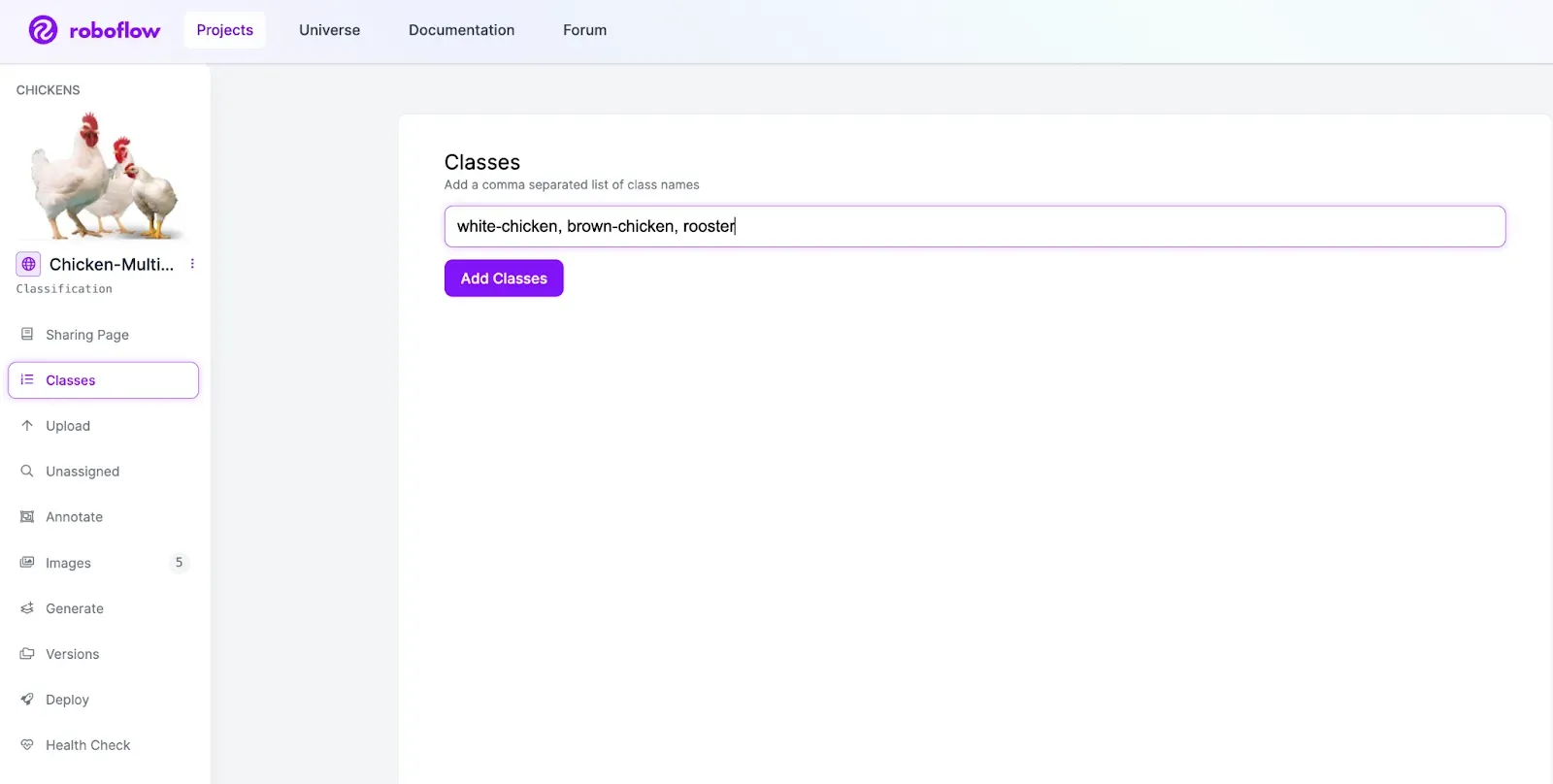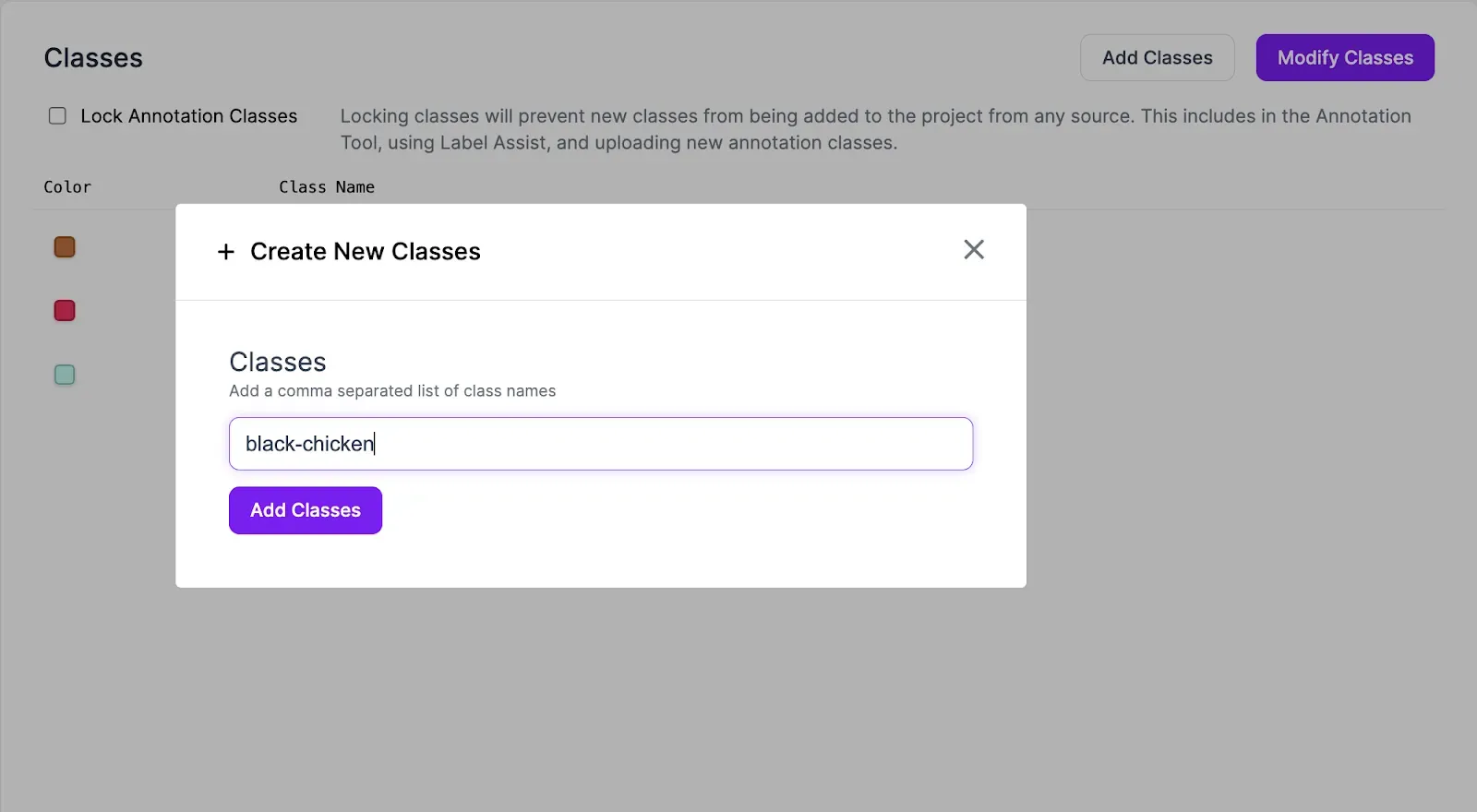 If you’re in a new project, you can define your classes on the Classes page by entering a comma separated list of class names, and clicking Add Classes.