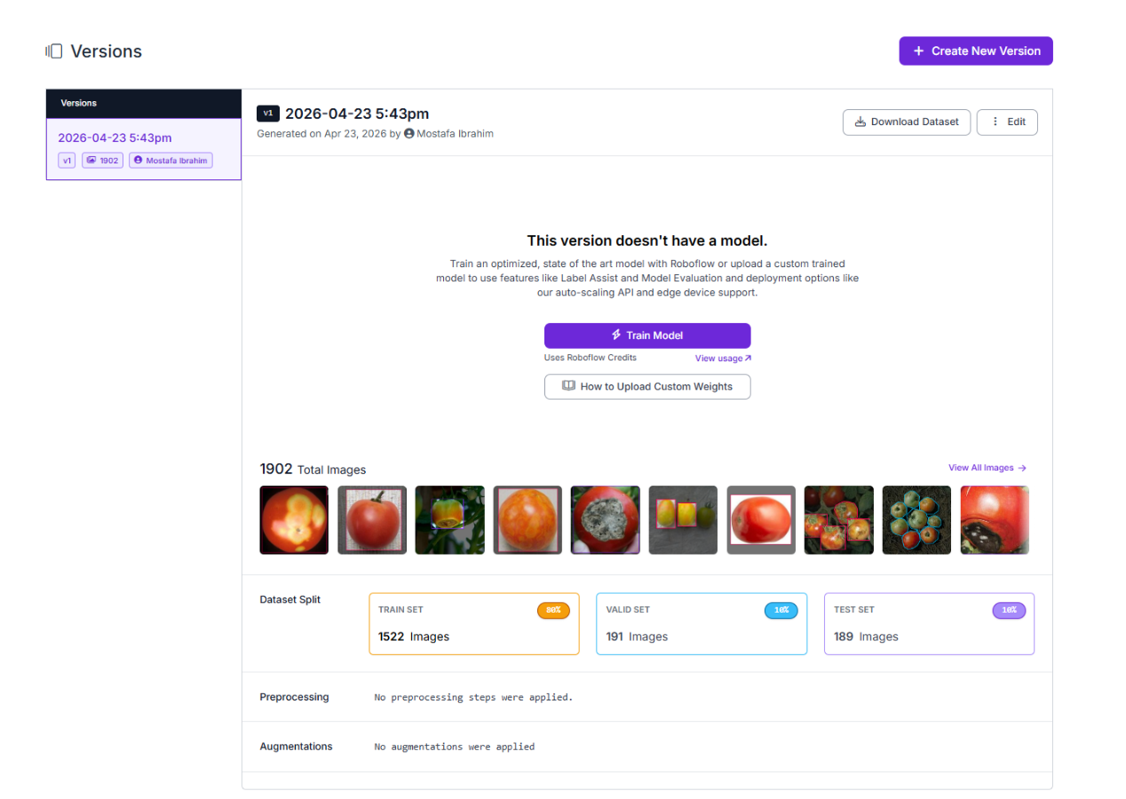 We'll use the Tomato Fruit Disease Detection dataset from Roboflow Universe, which contains 1,900 annotated images across five classes: Anthracnose, Bacterial Spot, Blossom End Rot, Healthy Tomato, and Spotted Wilt Virus. This dataset focuses on fruit-level disease detection rather than leaf analysis, making it particularly valuable for commercial growers who need to assess marketable yield.