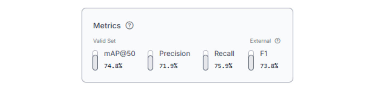 Once training completes, review your model's performance metrics to understand how well it identifies tomato diseases. Our RF-DETR Small model achieved solid results on this agricultural detection task: