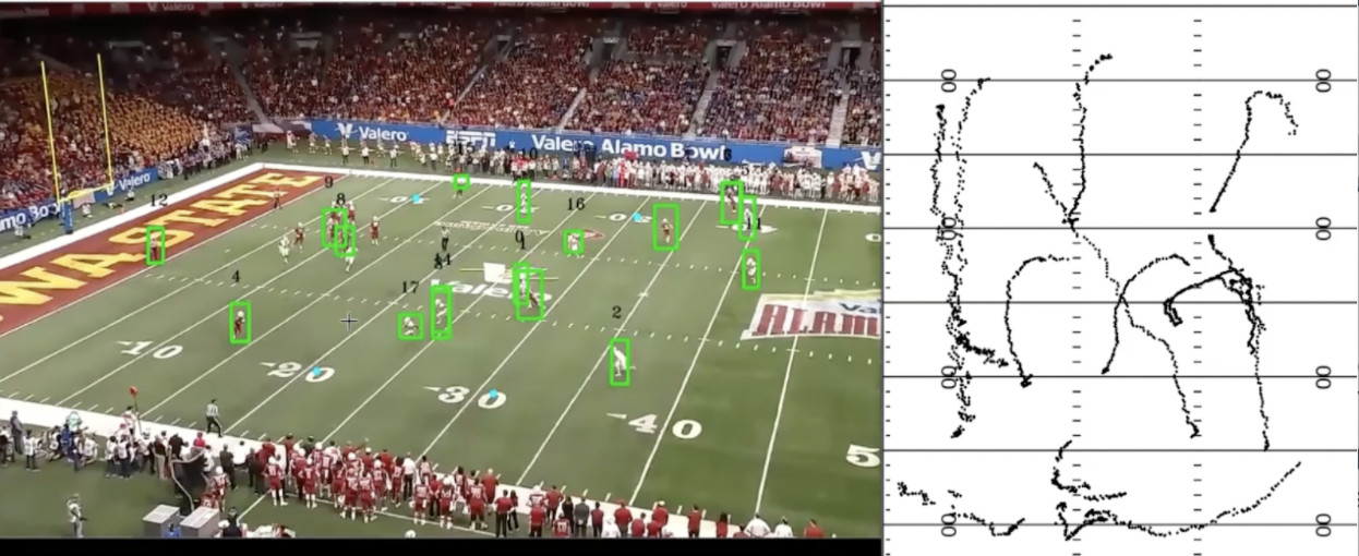 To solve the problem of identifying each individual player (e.g. defensive back, left tackle, center, etc), Bronkema determined he'd create a machine learning model. Notably, a model trained on recognizing people failed to identify football players; the thick padding and uniforms required a custom trained machine learning model.