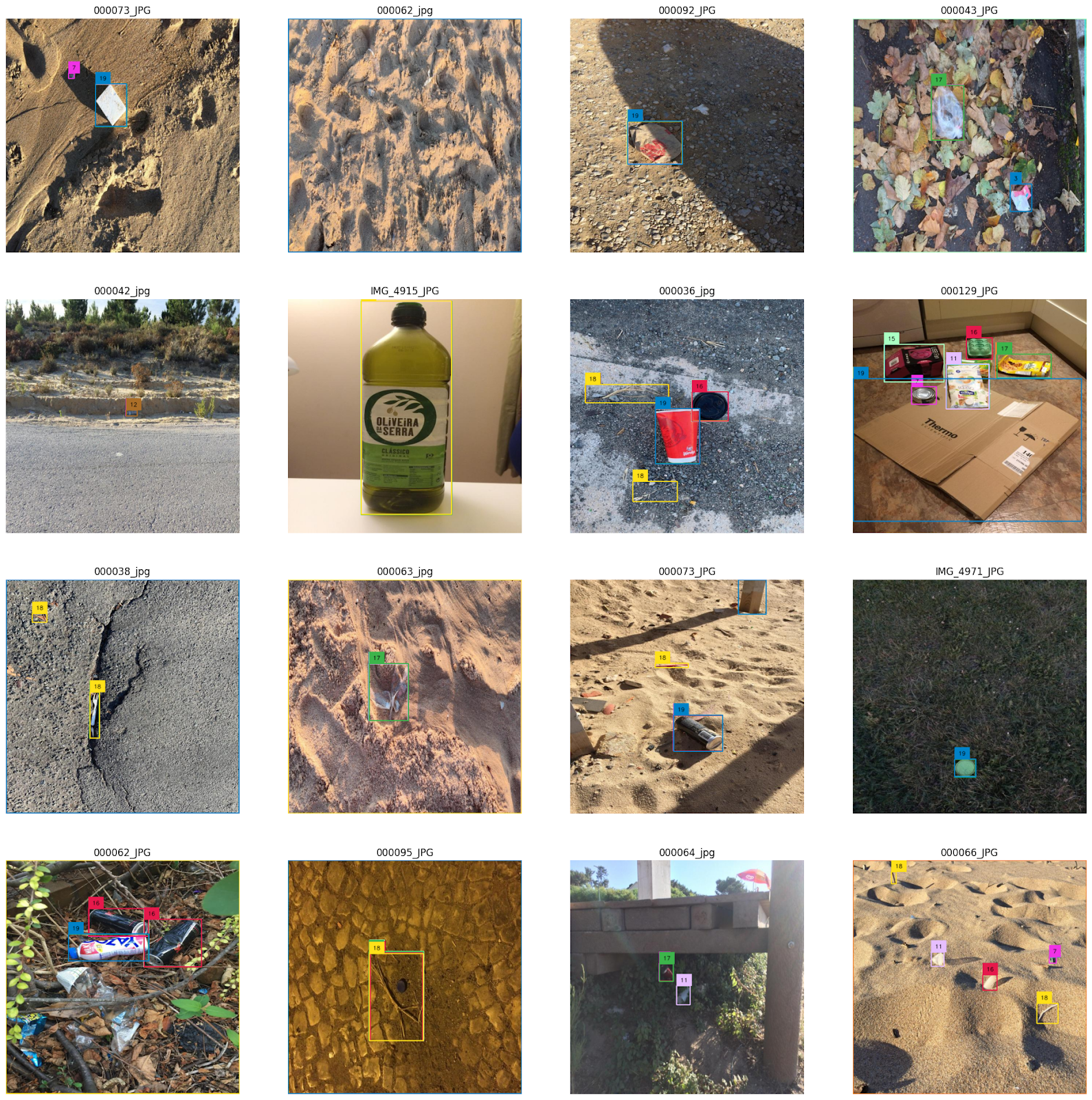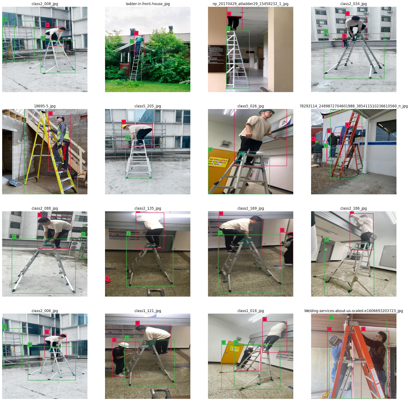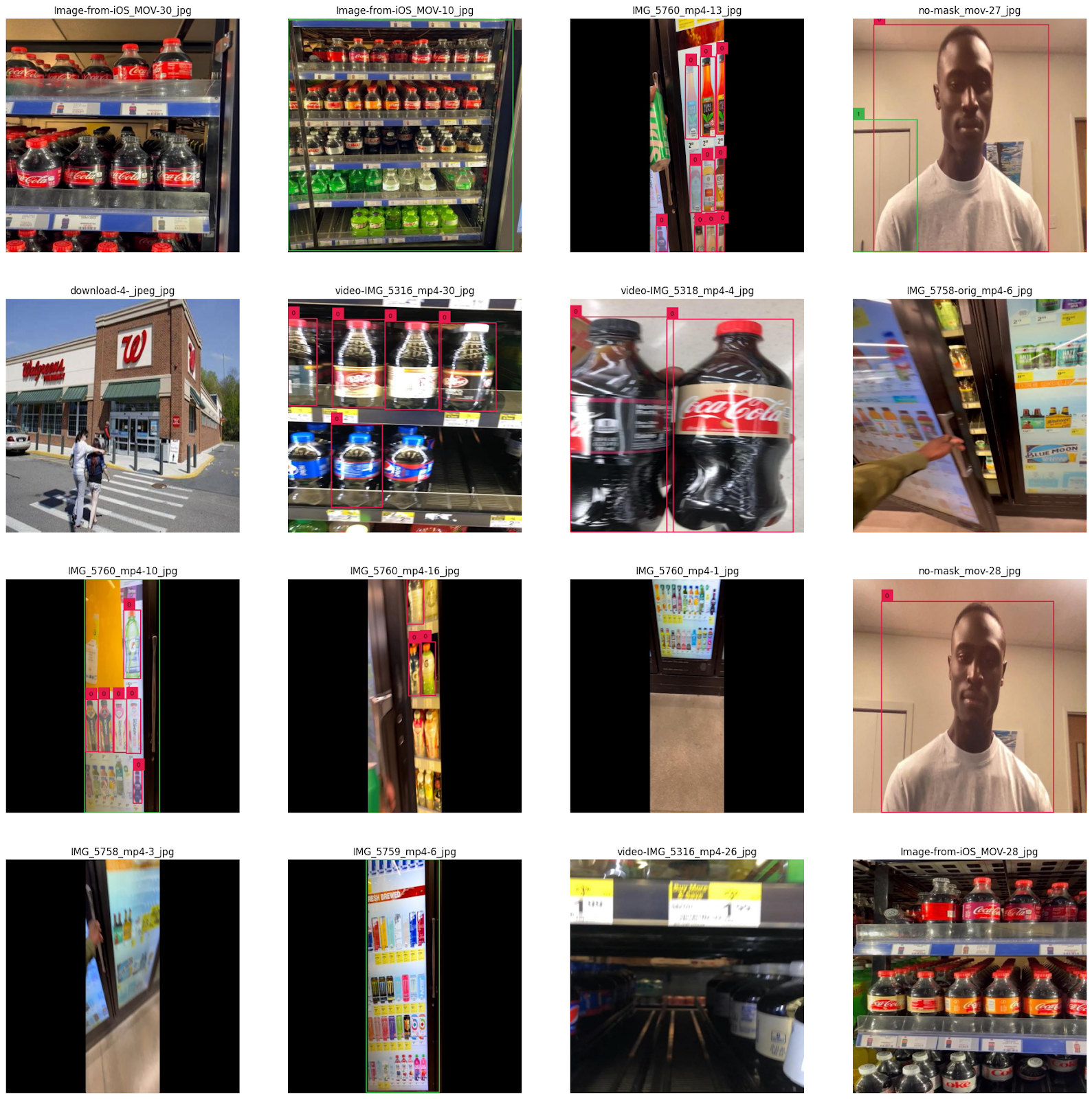 In this section, we show the visual results for inference on each dataset, presented as a 4x4 grid of images for each dataset. Out of six experiments we ran, Grounding DINO, the foundation model with which we are working, was able to label images to a high degree of accuracy in five experiments.