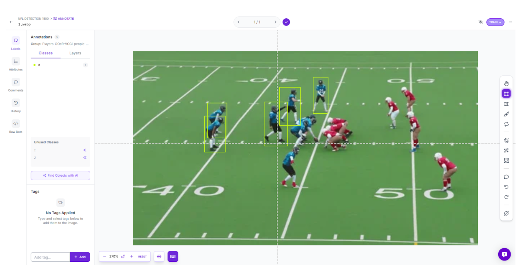 When working with your specific game footage, use Roboflow’s annotation tools to establish your targets. Generate precise boxes around players, labeling them by team or role to provide the model with a clear taxonomy.