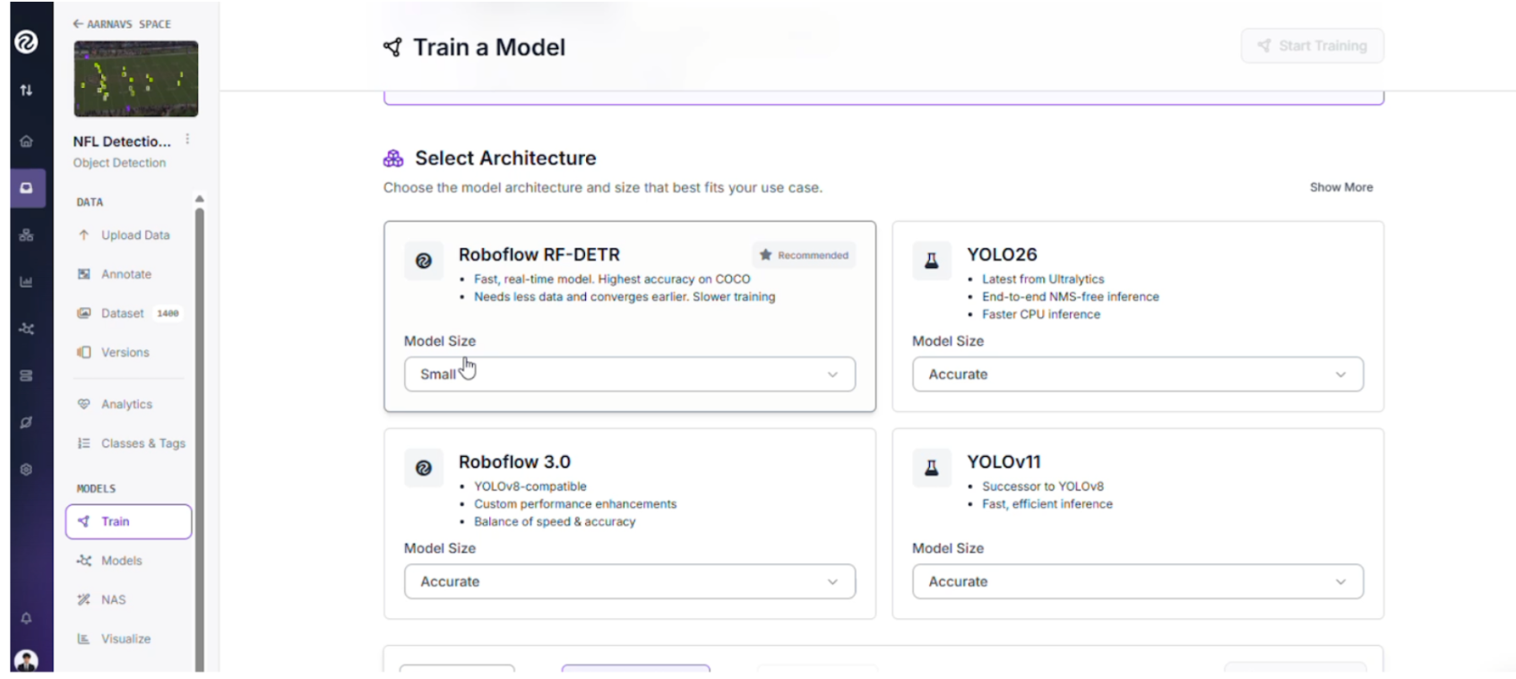 - Select Your Framework: Choose the RF-DETR Object Detection (Small) version.