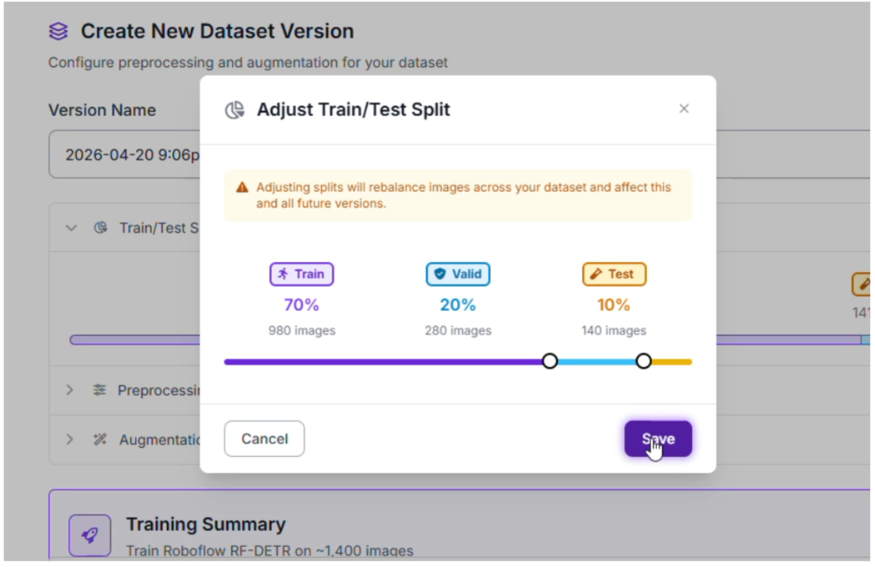 Step 5: Configure your Train/Test Split