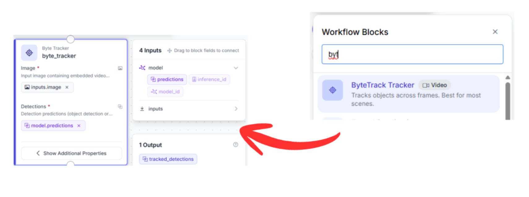 Connect the output of your Detection block to the Byte Tracker block.