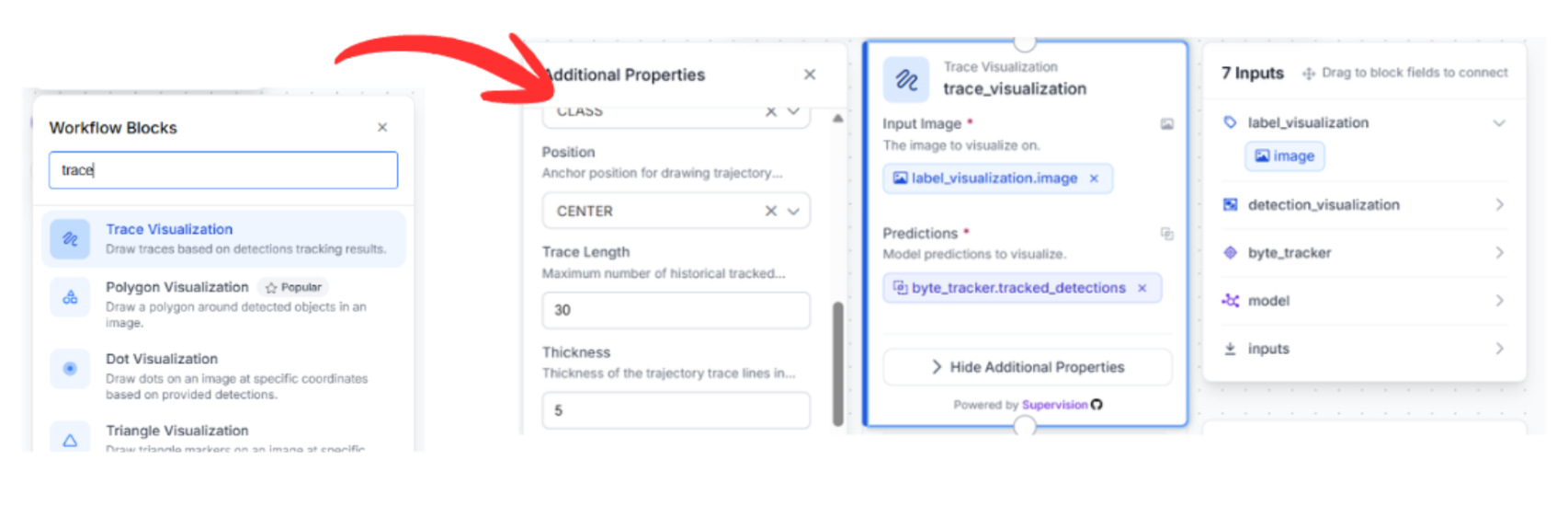 Trace Visualization: Finally, connect this to the label visualizer. This block maintains a history of the player's movement, drawing a "movement trail" behind each player’s ID.