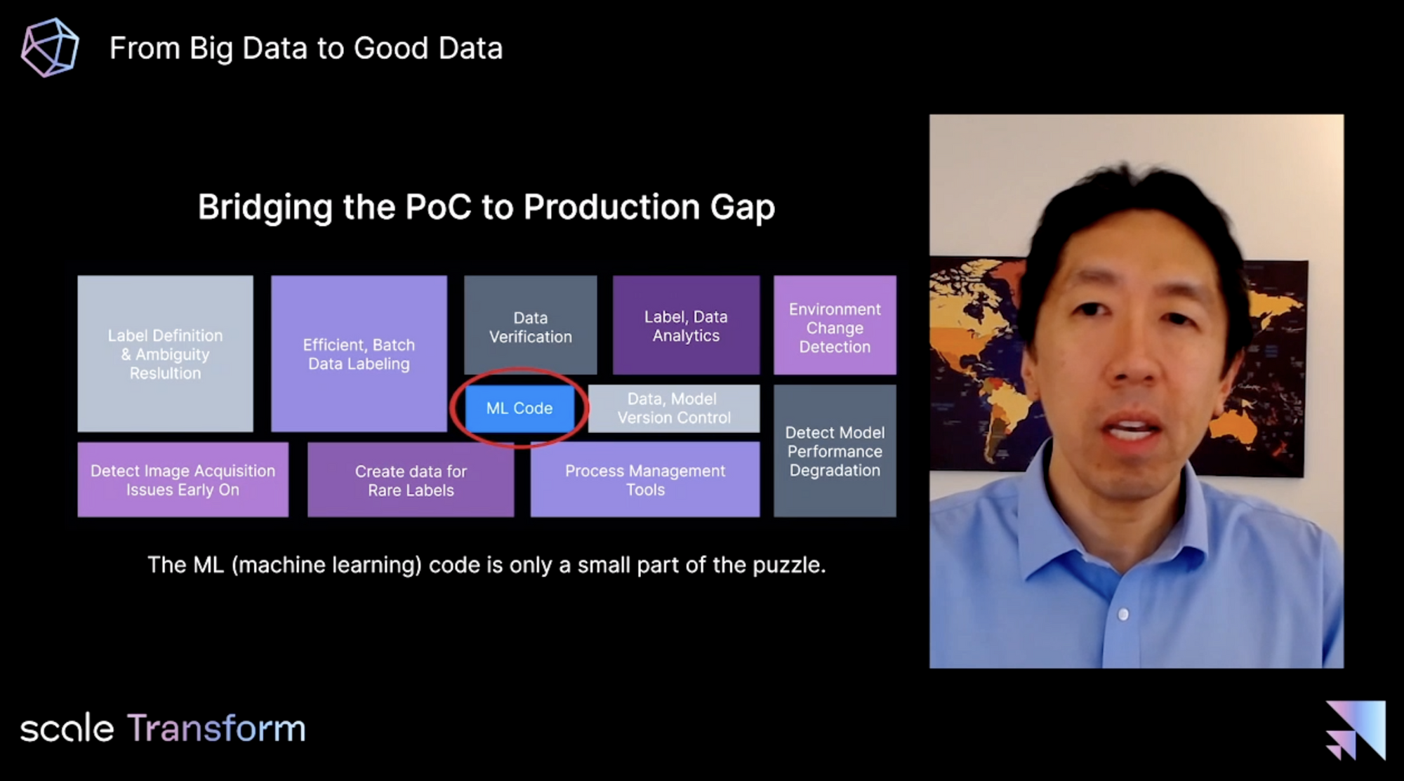 Brad Dwyer. (Mar 27, 2021). Andrew Ng: "Deploying to production means you're halfway there.". Roboflow Blog: https://blog.roboflow.com/andrew-ng-scale-transform-conference/