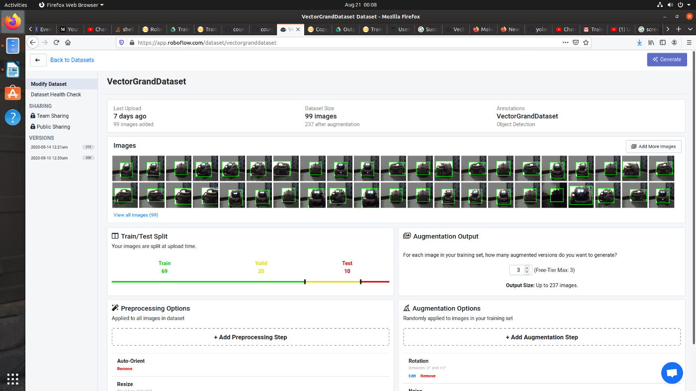 After collecting his labeled dataset, he uploaded it to Roboflow to create train, validation, and test splits and applied a variety of preprocessing steps to prepare his images for training and augmentations to generate more examples for his model to learn from.