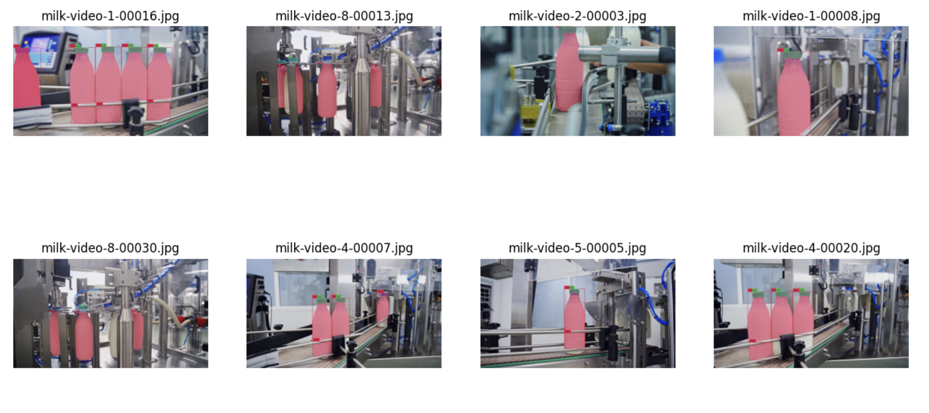 Our dataset contains videos of milk bottles on a production line. We can divide the videos into frames using supervision, a Python package that provides helpful utilities for use in building computer vision applications.