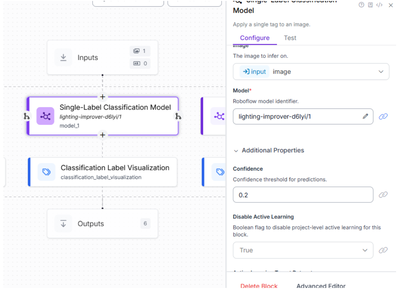 For the lighting classification model, we can bring the confidence threshold down to 0.2 in the Roboflow Workflow to make sure it catches all kinds of images, even those with weird lighting, like dim corners or funky shadows. This lower setting lets the model tag more photos confidently, giving us solid metadata like “High Dense” or “High Moderate” without missing the mark: