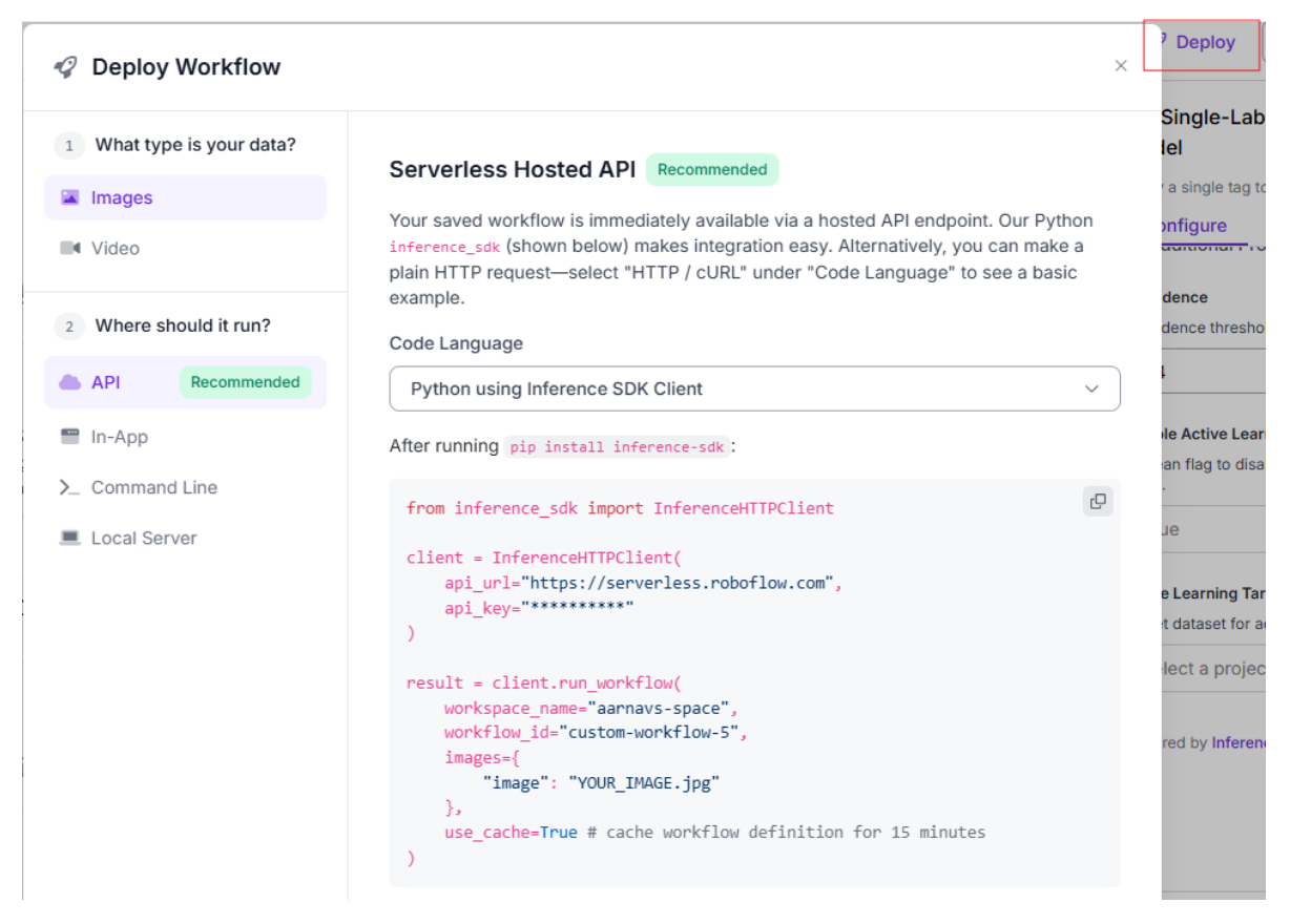 Finally, the workflow is accessible via API, enabling seamless integration with the Python application: