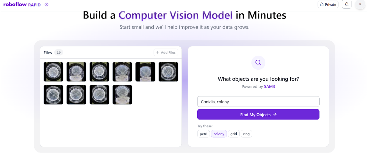 Populate your dataset by uploading high-quality microscope imagery directly into the Roboflow platform. For automated counting, your model is only as good as the pixels it sees. Ensure your uploads represent the real-world conditions of your lab, including variations in lighting, magnification, and conidia density.