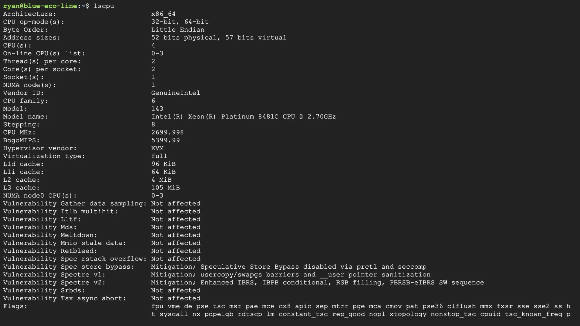 Once you SSH into your C3 Virtual Machine, you can see the Intel Hardware Specs below.