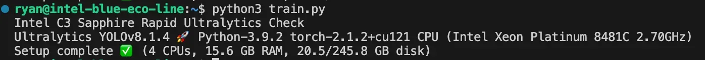 Here are the steps for using a C3 Sapphire Rapids Virtual Machine on GCP to train a YOLOv8 model.