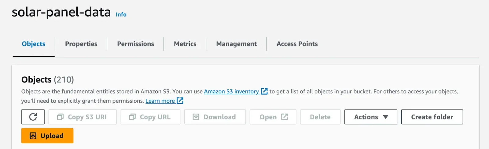 Once you have created your bucket, click the “Upload” button to upload your data: