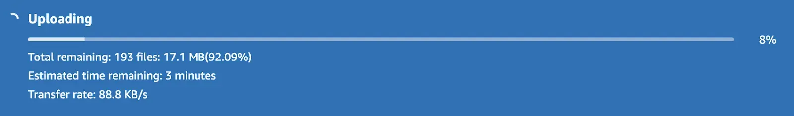 When you are ready to upload your data, click the “Upload” button. A progress bar will appear showing the status of your upload job. Do not close the page while data is uploading.