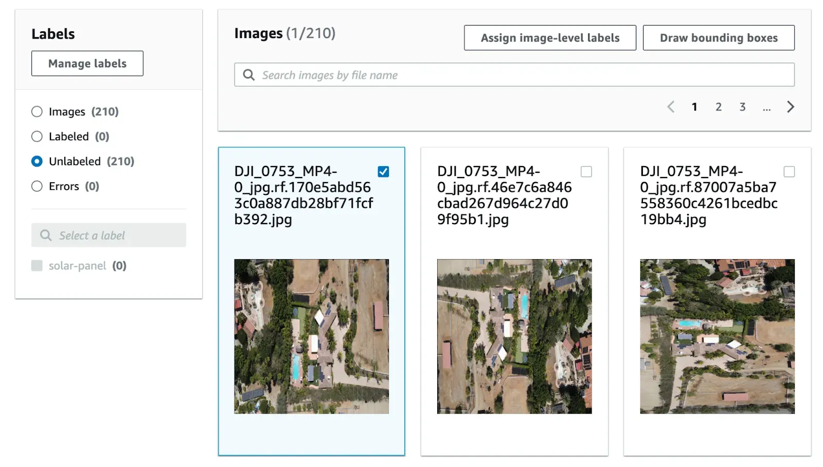 In this guide, we are going to walk through how to label a computer vision dataset using AWS Rekognition Custom Labels. We will create an S3 bucket in which to store data, import our data into AWS Rekognition, then label data. We will label an object detection dataset for use in a solar panel detection model.
