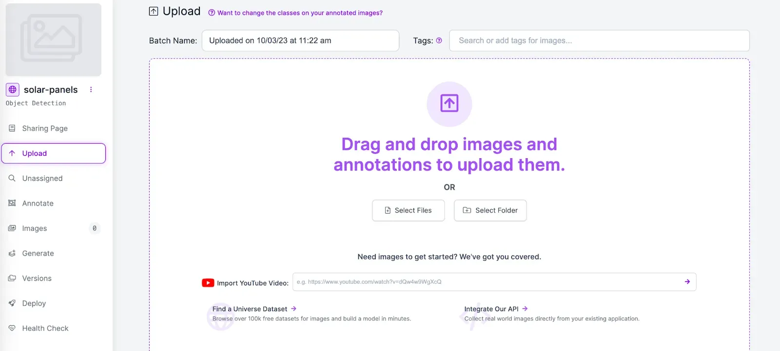 Next, upload your images and any annotations you have to the Roboflow platform. You can label unannotated images in Roboflow and inspect and adjust annotated images. Roboflow supports annotations in over 30 different formats.