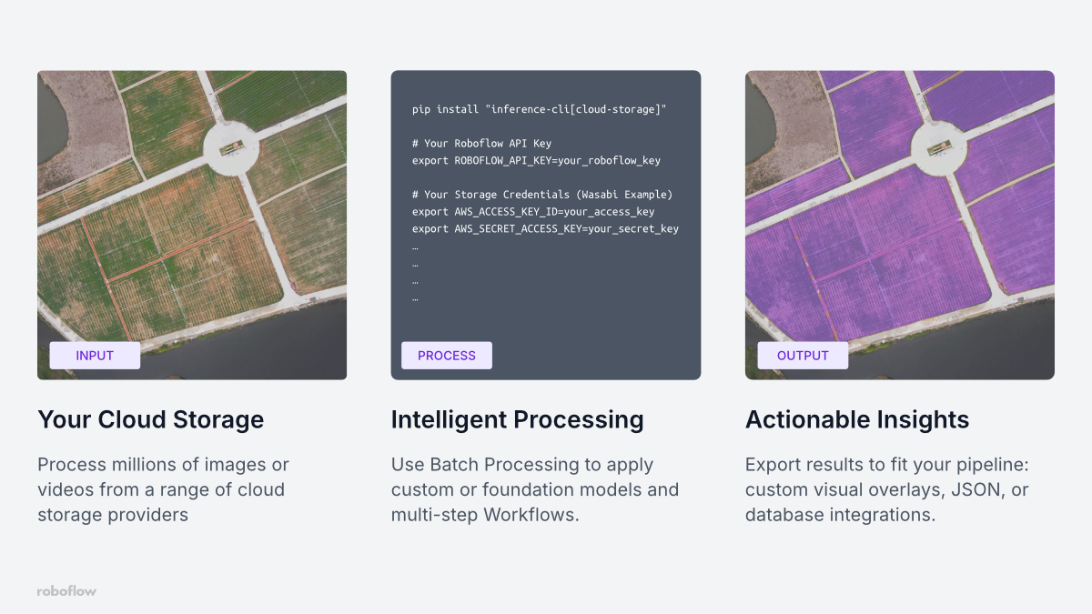 You can now process millions of images or hundreds of hours of video directly from services like Wasabi, Backblaze, or Cloudflare R2, and others. This makes it easier to bring visual intelligence to massive datasets stored in the cloud while simplifying infrastructure management and optimizing inference costs.