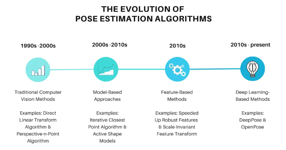 Pose estimation approaches have evolved significantly over the decades. For a comprehensive history of these advancements, see our detailed article on pose estimation algorithms and their evolution.
