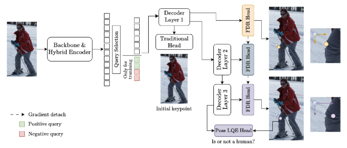 The key innovation is Pose Denoising, a novel technique adapted from object detection but tailored for keypoint estimation. This approach generates both positive and negative query samples during training, improving model robustness and accelerating convergence.