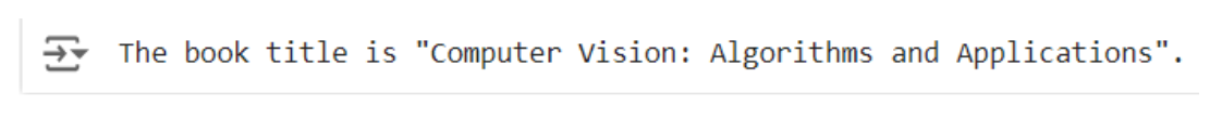 In the following code, we will test the GPT-4o model to extract only the book title from the input text. Later, in the final step, we will use this code to detect other relevant information about the book that we want to store from the text extracted from the uploaded book cover image.
