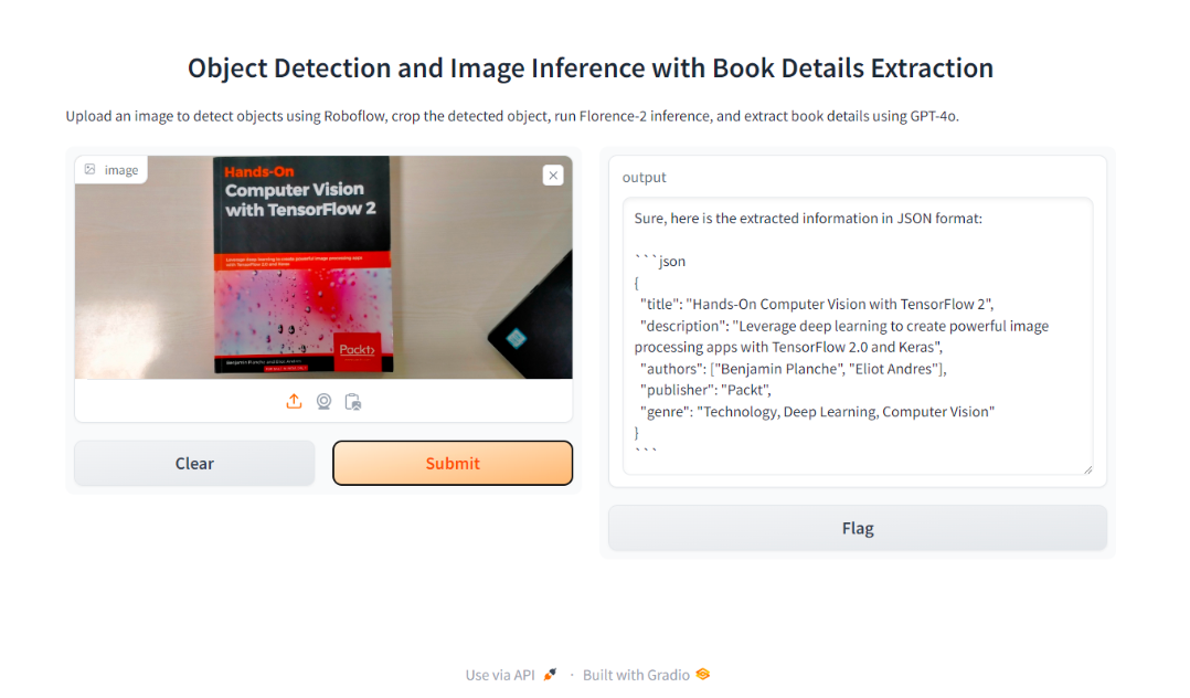 The application we will develop uses an object detection model to detect book cover trained using Roboflow, Microsoft's Florence-2 vision foundation model, and the GPT-4o model API. We will build the graphical user interface (GUI) for the project using Gradio.