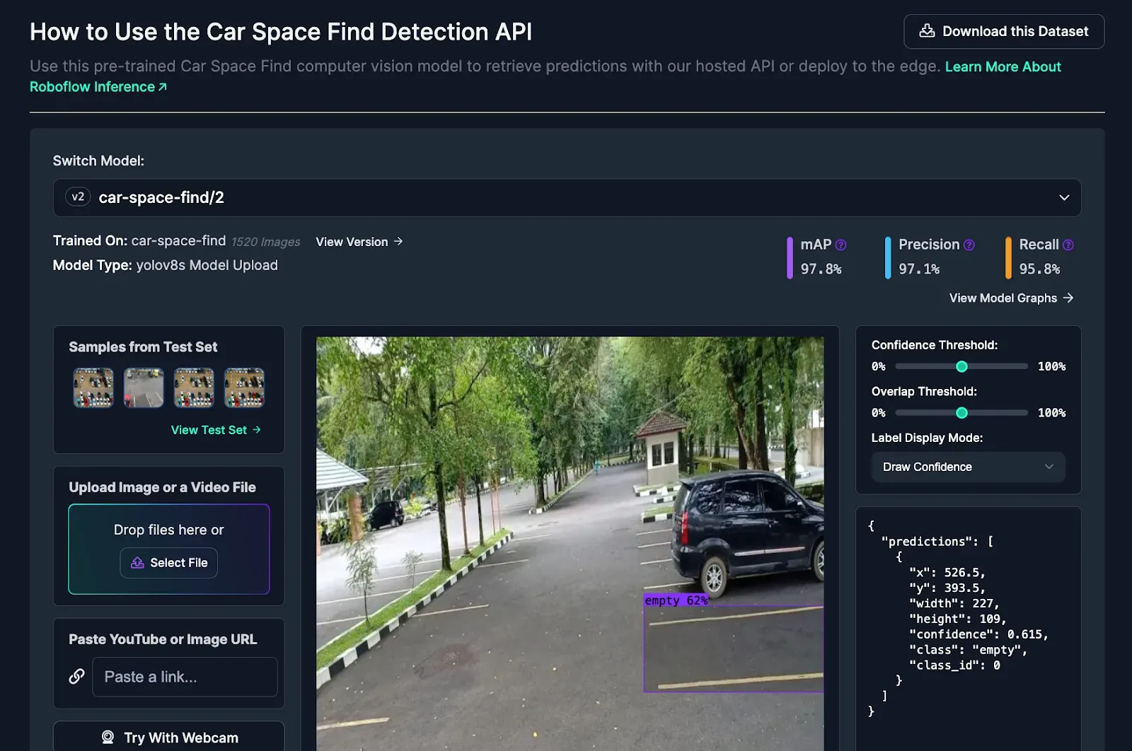 To get started, create a Roboflow account and navigate to the model page on the Car Space Detection model hosted on Roboflow Universe.