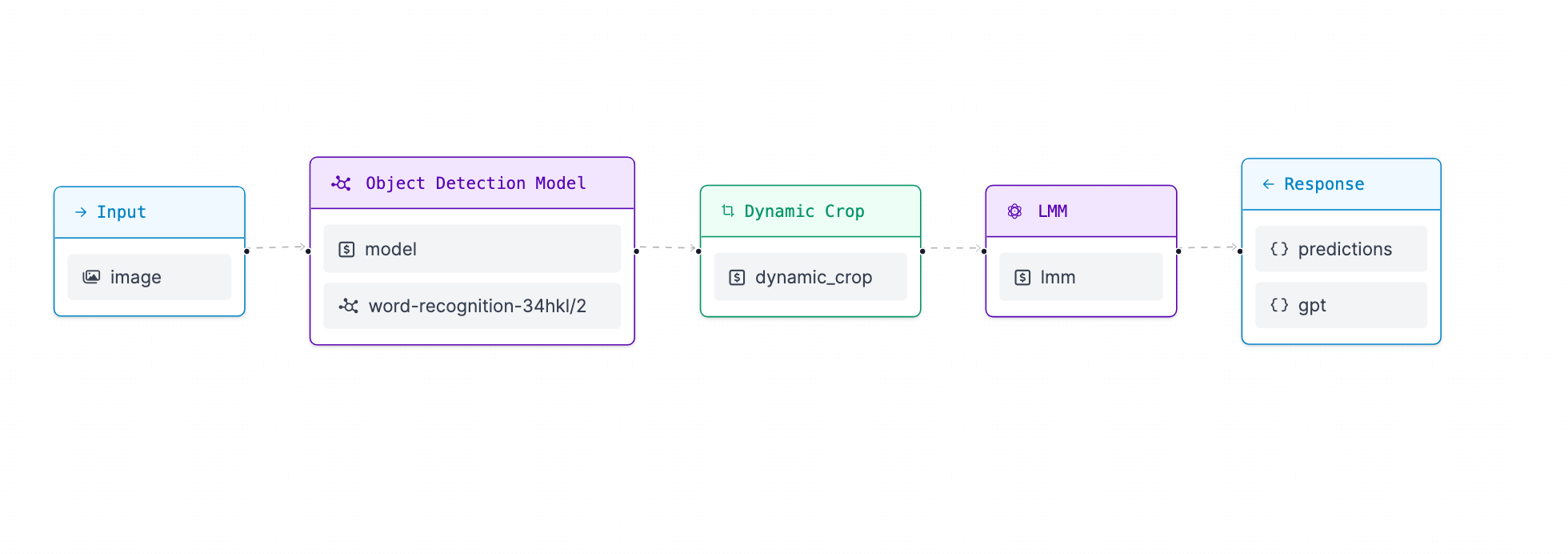 Workflows is a web-based, interactive computer vision application builder. You can use Workflows to define multi-stage computer vision applications that can be run in the cloud or on your own hardware.