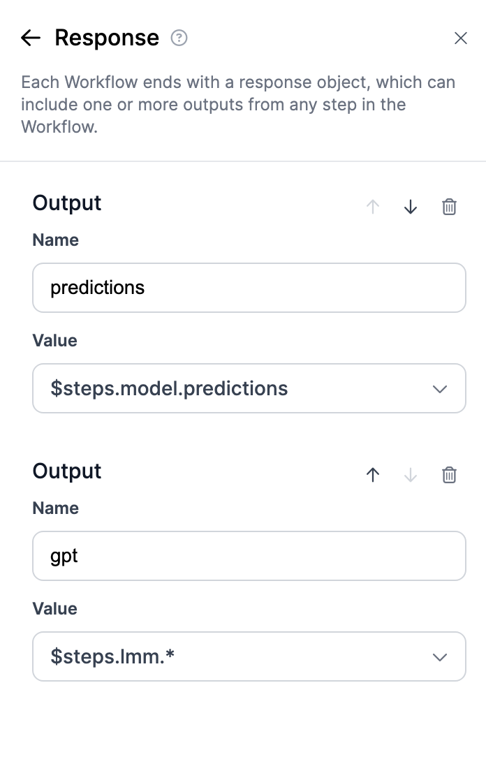 Lastly, connect the output with the object detection model. Also make sure to change the name of both models to “predictions” and “gpt”.