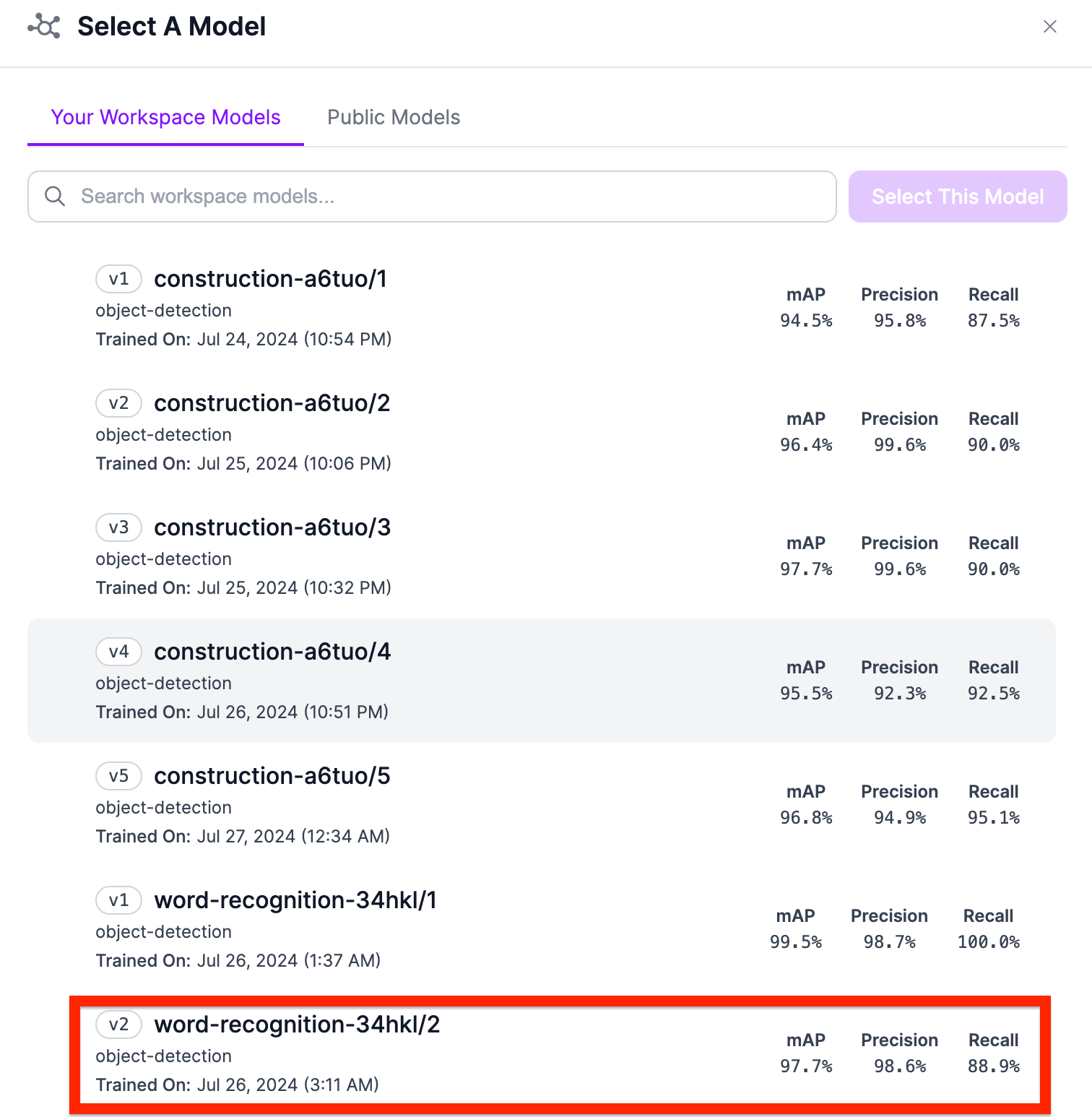 Select the specific object detection model as the one you need.