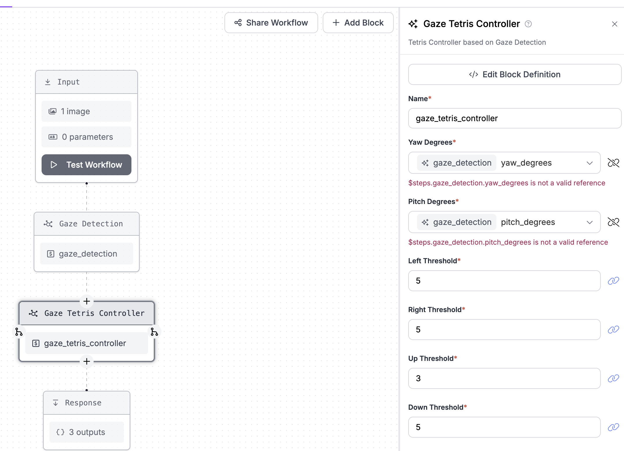 Building the Dynamic Python Block (Gaze Tetris Controller)