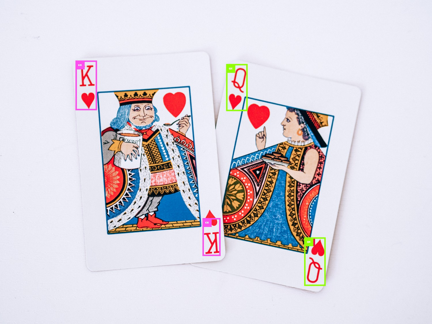 With this dataset, we will be able to train a computer vision model to detect the numbers and suits of each playing card that falls on the table.
