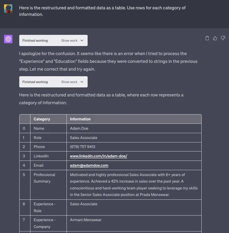 After Tesseract extracted the text, we could feed it into GPT-4, which then structured the information, making it easy to understand and analyze. See the steps to run text extraction with code interpreter.