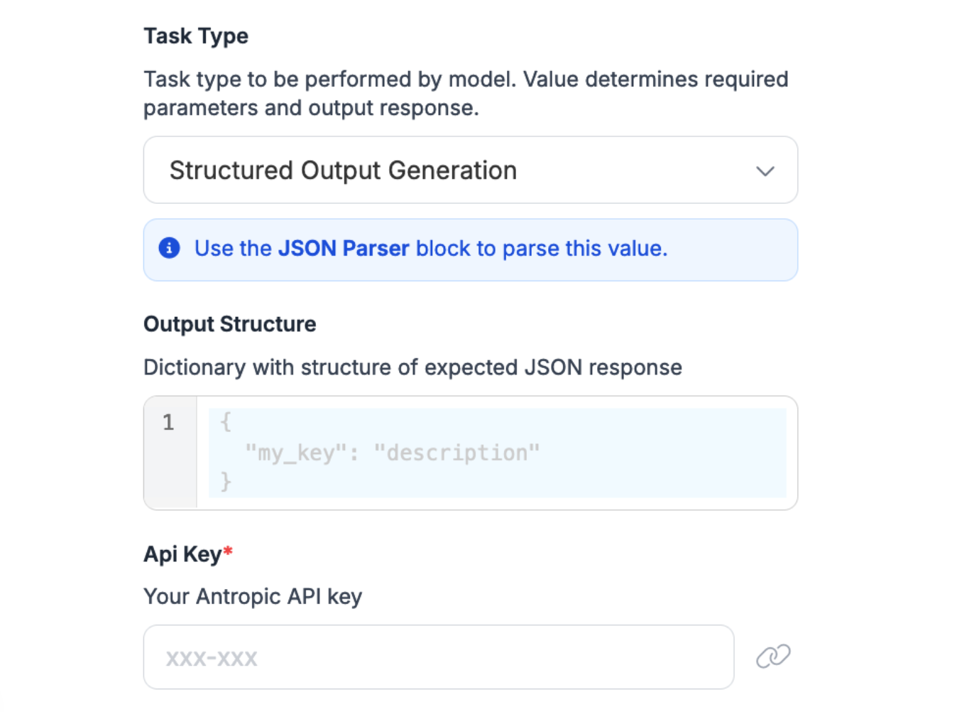 For this guide, we are going to use Claude for structured data extraction. For this task, we will use the “Structured output generation” task.