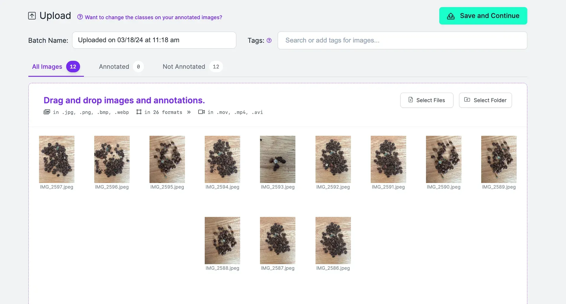 Step #2: Upload Coffee Bean Images