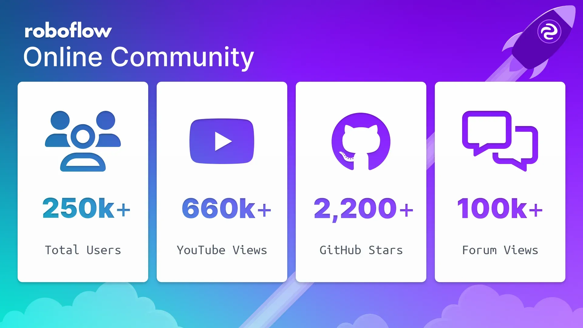 We are excited to play a role in this growing and important community helping advance computer vision. Our goal is to continue investing in resources for the community in the form of free Roboflow platform access, open source datasets, fine-tuned models, and open source tools.