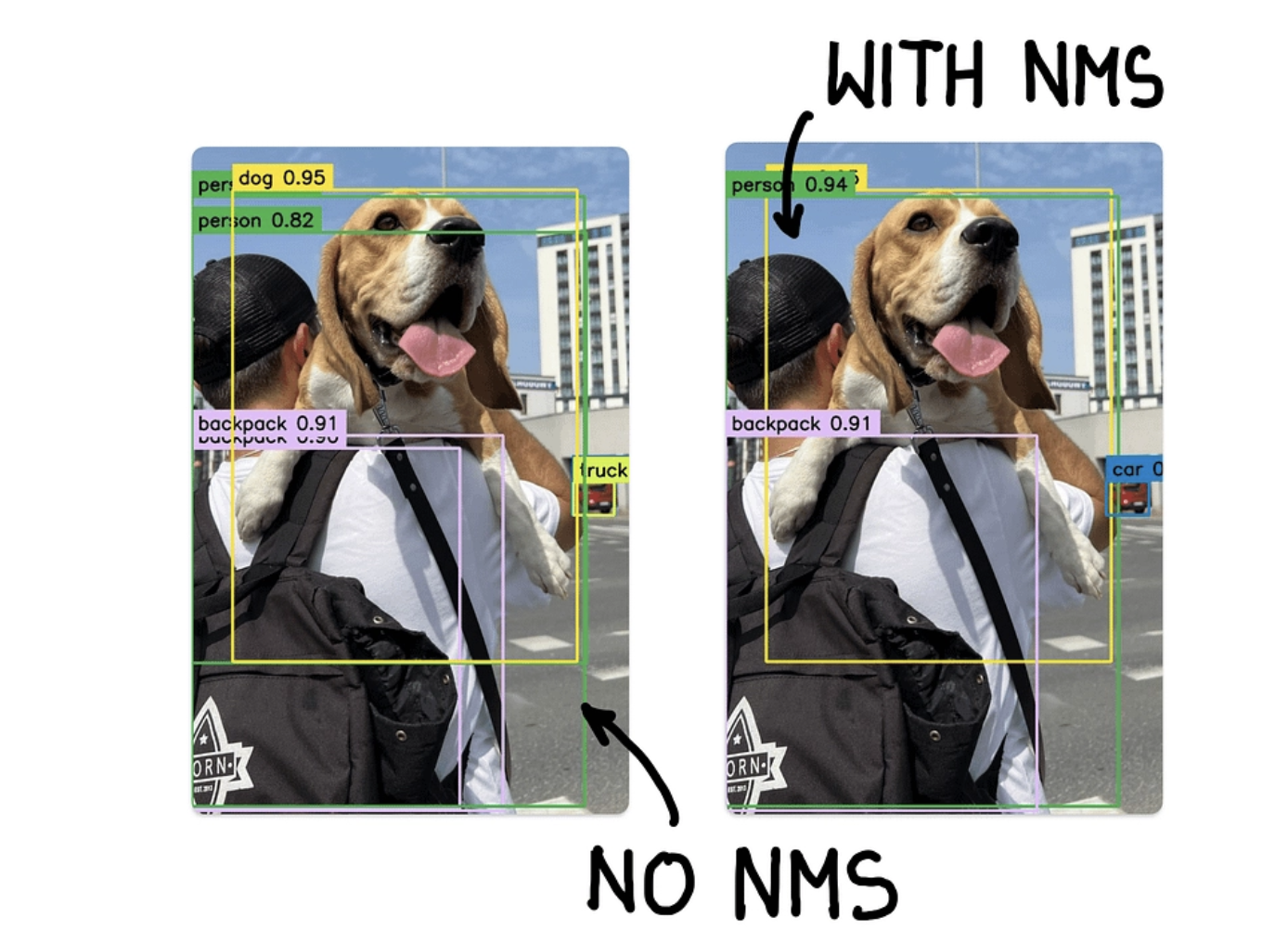 Traditional YOLO models rely on Non Maximum Suppression to filter overlapping bounding boxes. This step introduces additional latency and is often excluded from standard benchmarks.