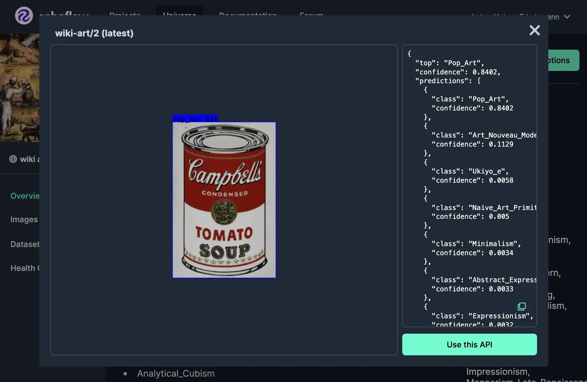 A semester's worth of art history is one API call away, thanks to the Wiki Art dataset and model on Roboflow Universe.