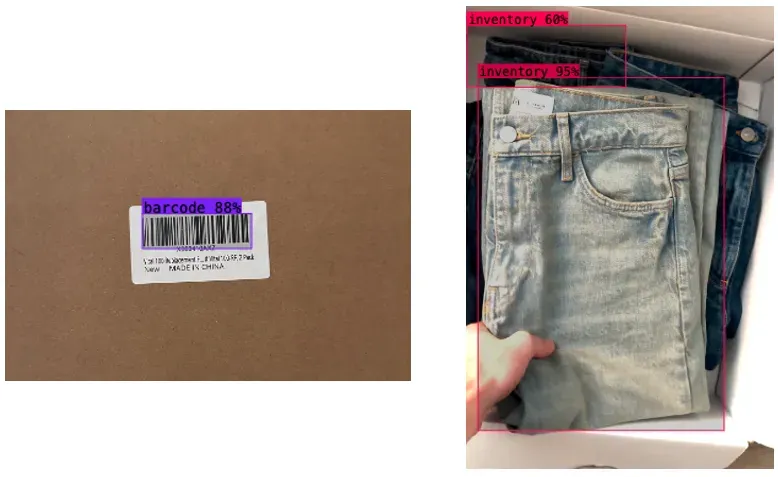 What if we could scan the first SKU and leave the rest to computer vision? Here’s where the inventory object detection model applies. It detects both the parent barcode of inventory and a sample set of inventory. With a counter developed, this model can set-up at each receiving station and count each SKU so the operator doesn’t have to. Receiving throughput increases exponentially.
