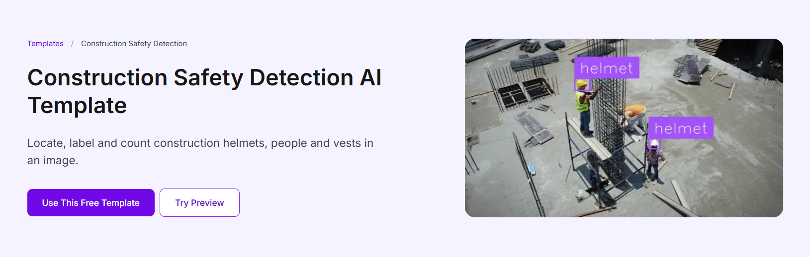 Visit Construction Safety Detection AI Template and click “Use This Free Template” to clone the workflow into your workspace.