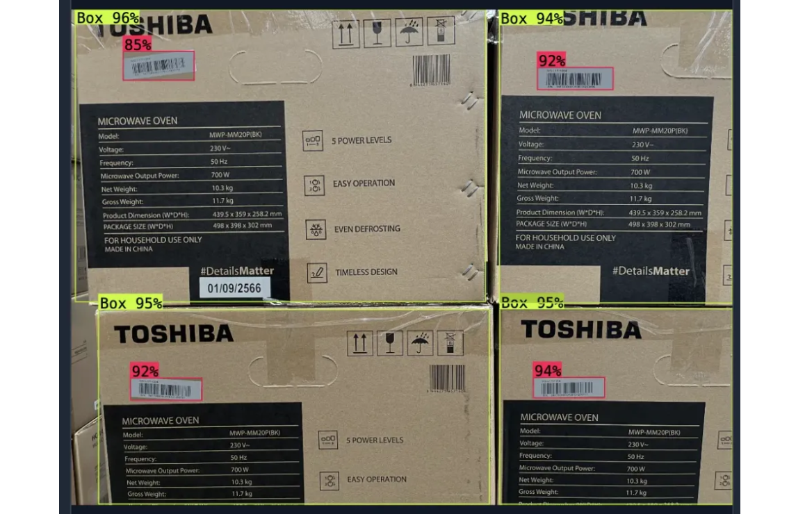 - Manufacturing: Barcode reader AI can be paired with detection to trace parts through the production line, ensuring that each component is correctly logged at every stage.