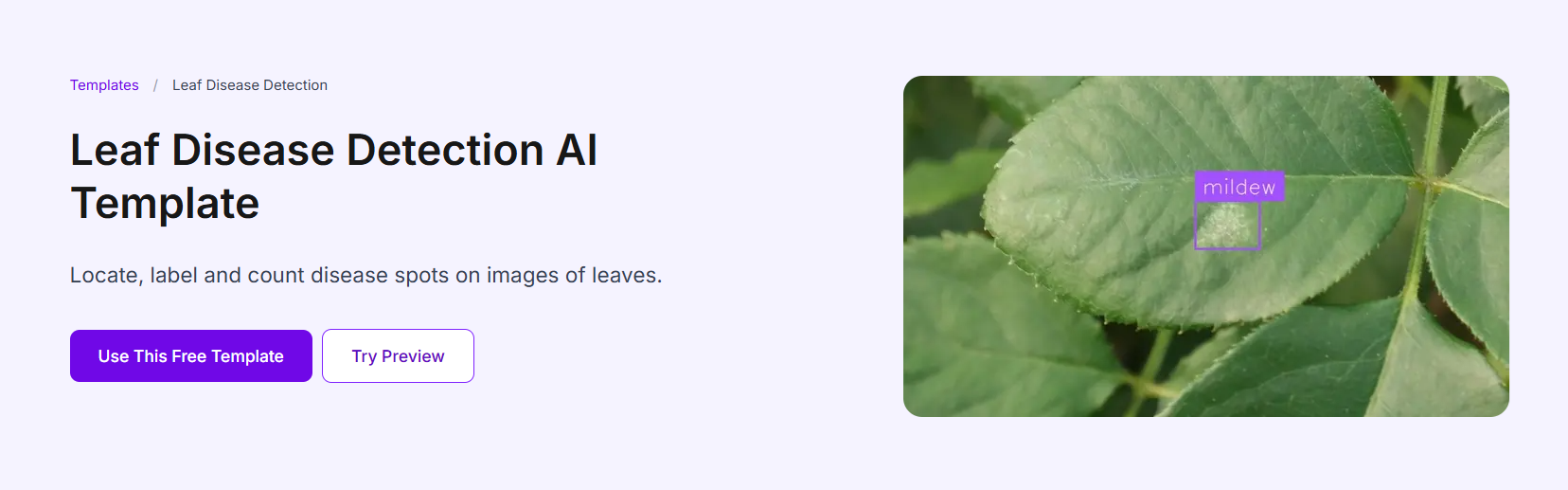 Visit Leaf Disease Detection AI Template and click “Use This Free Template” button to clone the workflow into your workspace.