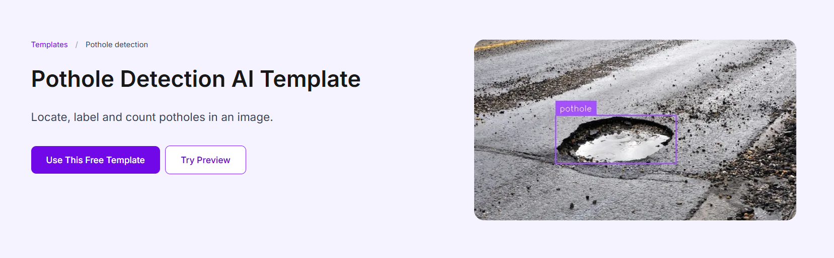 Visit Pothole Detection Template and click click “Use This Free Template” to clone the template into your workspace.