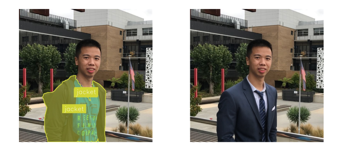 This project builds a workflow that takes an input image of a person, detects clothing items (jackets, pants, dresses, etc.), segments their shapes precisely, and then uses generative inpainting to change or replace the outfit based on a user prompt (e.g. “80s fashion”, “summer dress” etc.).