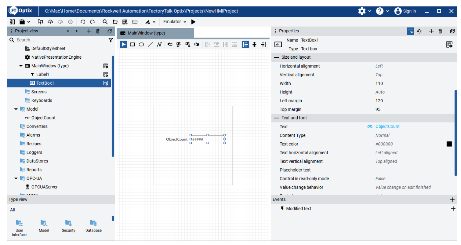 - object_name: The path to your folder. Use NewHMIProject/Model.