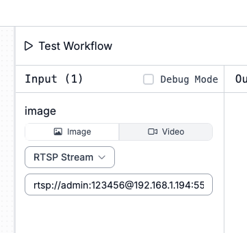 RTSP stream used as a workflow preview source: