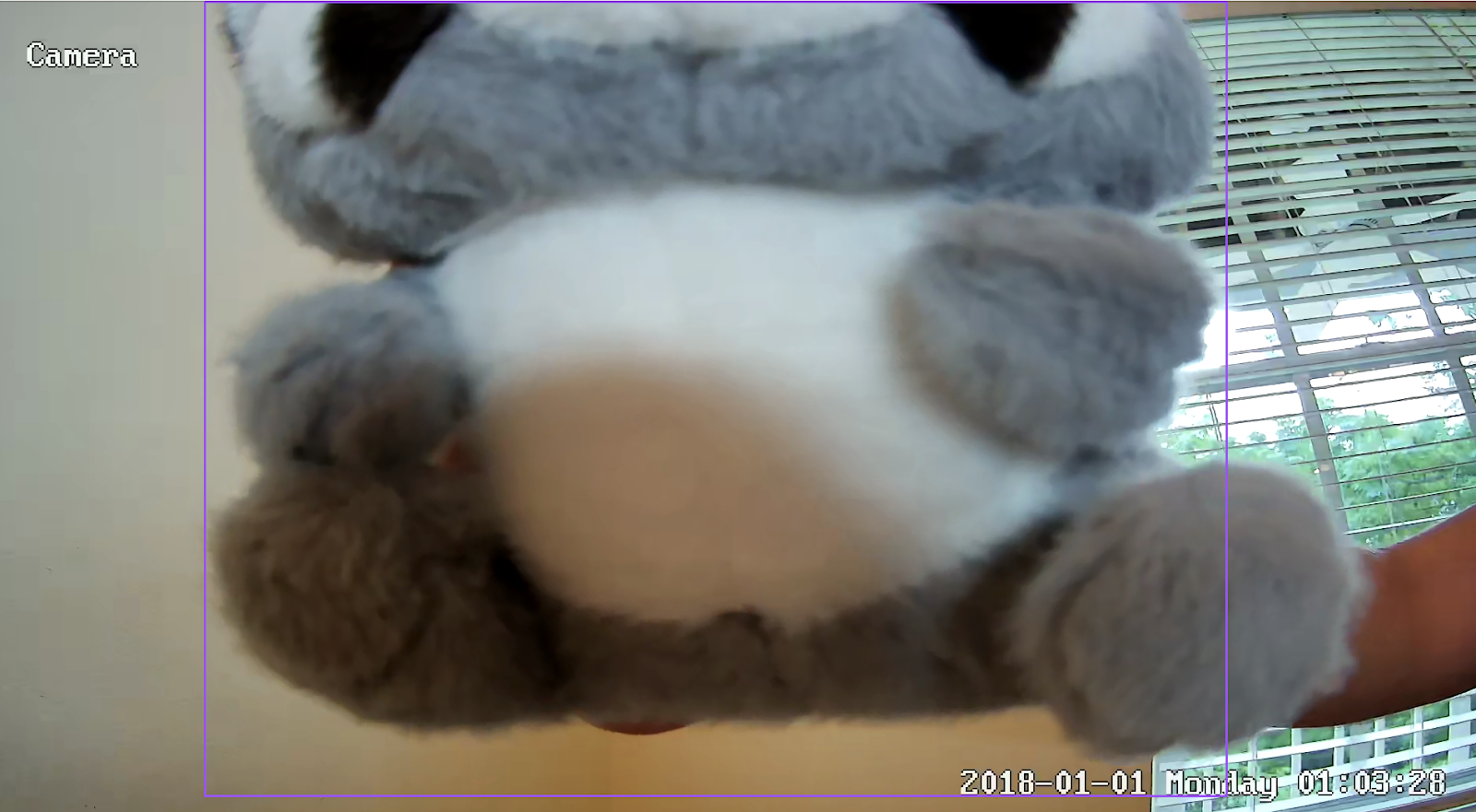 In addition to this, models frequently won’t work when objects are partially visible. In the example below, only the ears of the raccoon are visible. The model isn’t trained well enough to recognize this as our object. Since the camera won’t move if it doesn’t detect an object, it won’t track downwards to follow this object.