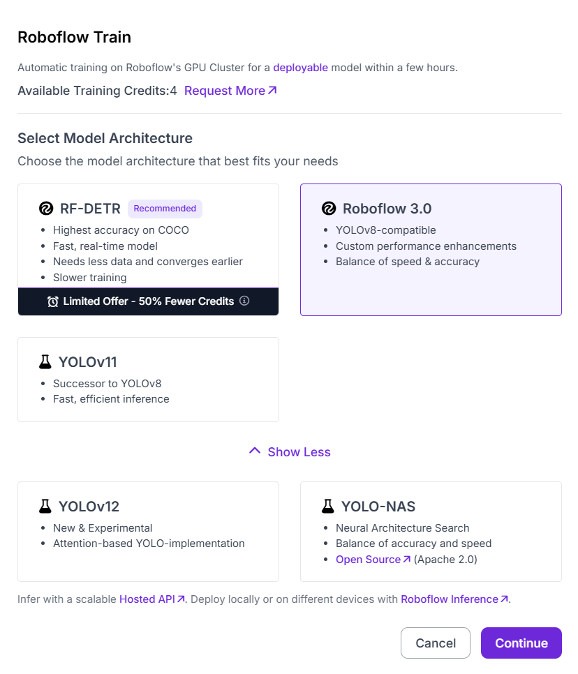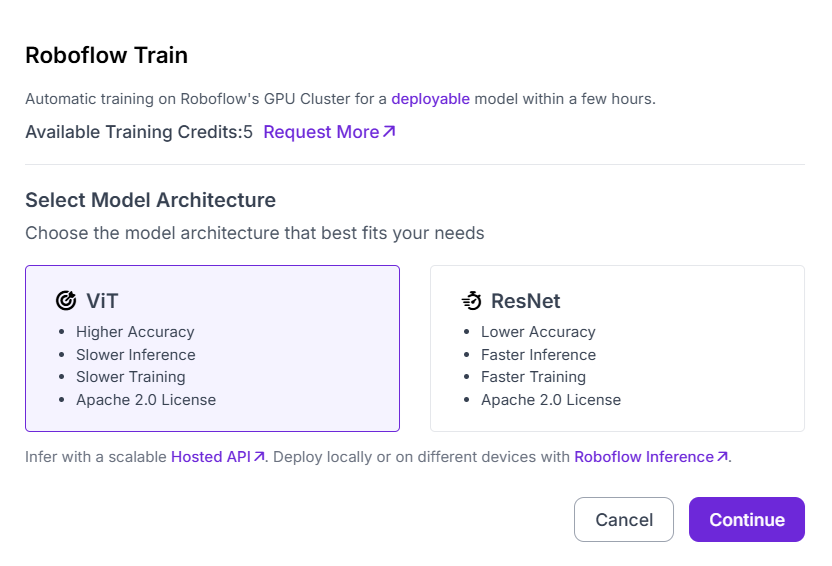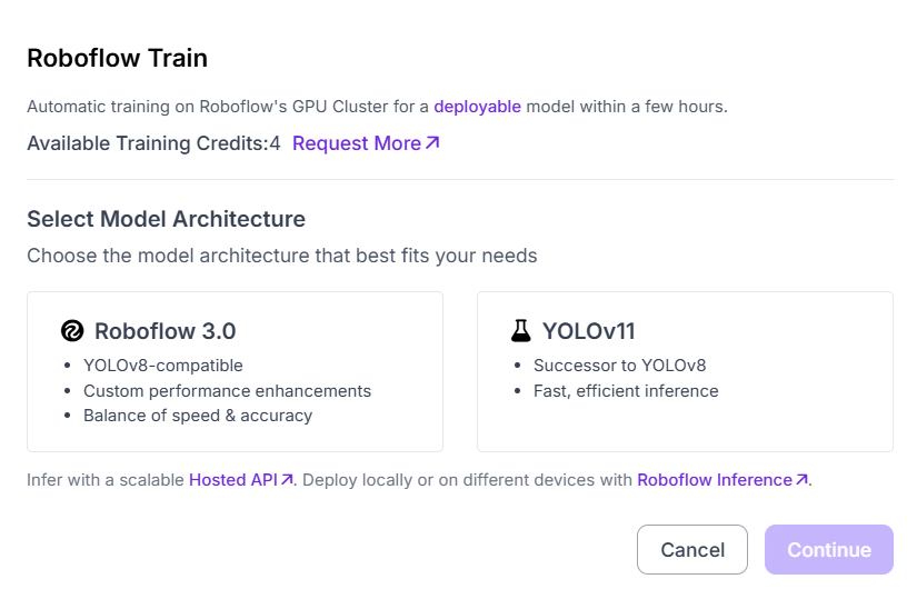 Finally, you select the training strategy. Roboflow offers three options: