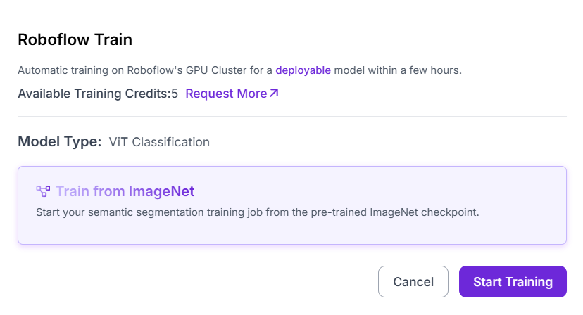 Finally, after confirming these settings, clicking Start Training launches the training job on Roboflow’s GPU cluster. Within a few hours, you receive a deployable image classification model that can be tested, evaluated, and integrated into applications through Roboflow Inference.
